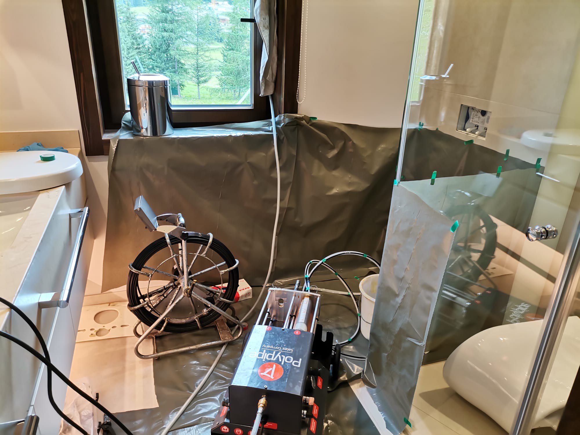 Der Einsatz unseres Spray Technik Harz Verfahrens ermöglicht die dauerhafte Reparatur von Abflussrohren ohne das Aufstemmen der Wände.